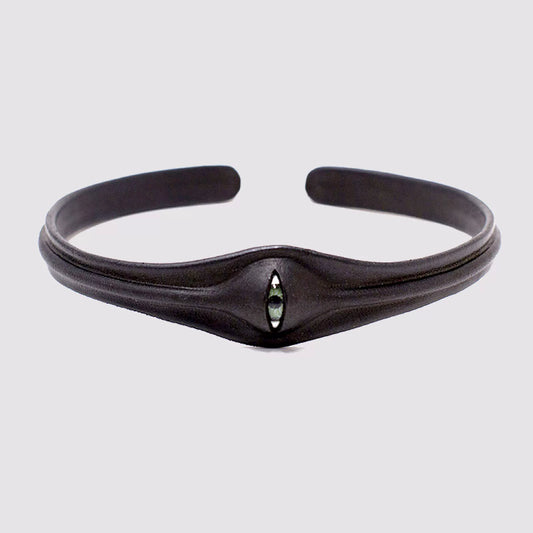 Handmade Italian Leather Eyeball Choker - 2-in-1 Gothic Wrap Bracelet - Unique Avant-Garde Accessory for Women & Men.